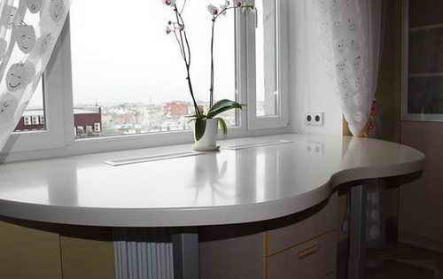 Подоконник-стол представляет собой подоконник, плавно переходящий в столешницу и выполняющий функции как подоконника так и стола. Основное применение подоконники-столы нашли на кухне, где подоконник, установленный в виде стола значительно увеличивает кухонную столешницу.