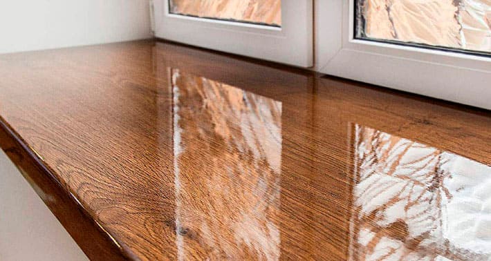 Покрытие подоконников лаком - цена 50 руб за м2. Поверхности, покрытые полиуретановым лаком, обладают отличными влаго и грязезащитными свойствами, при контакте с горячими предметами (более 100 градусов) на покрытии могут проявляться жёлтые пятна.